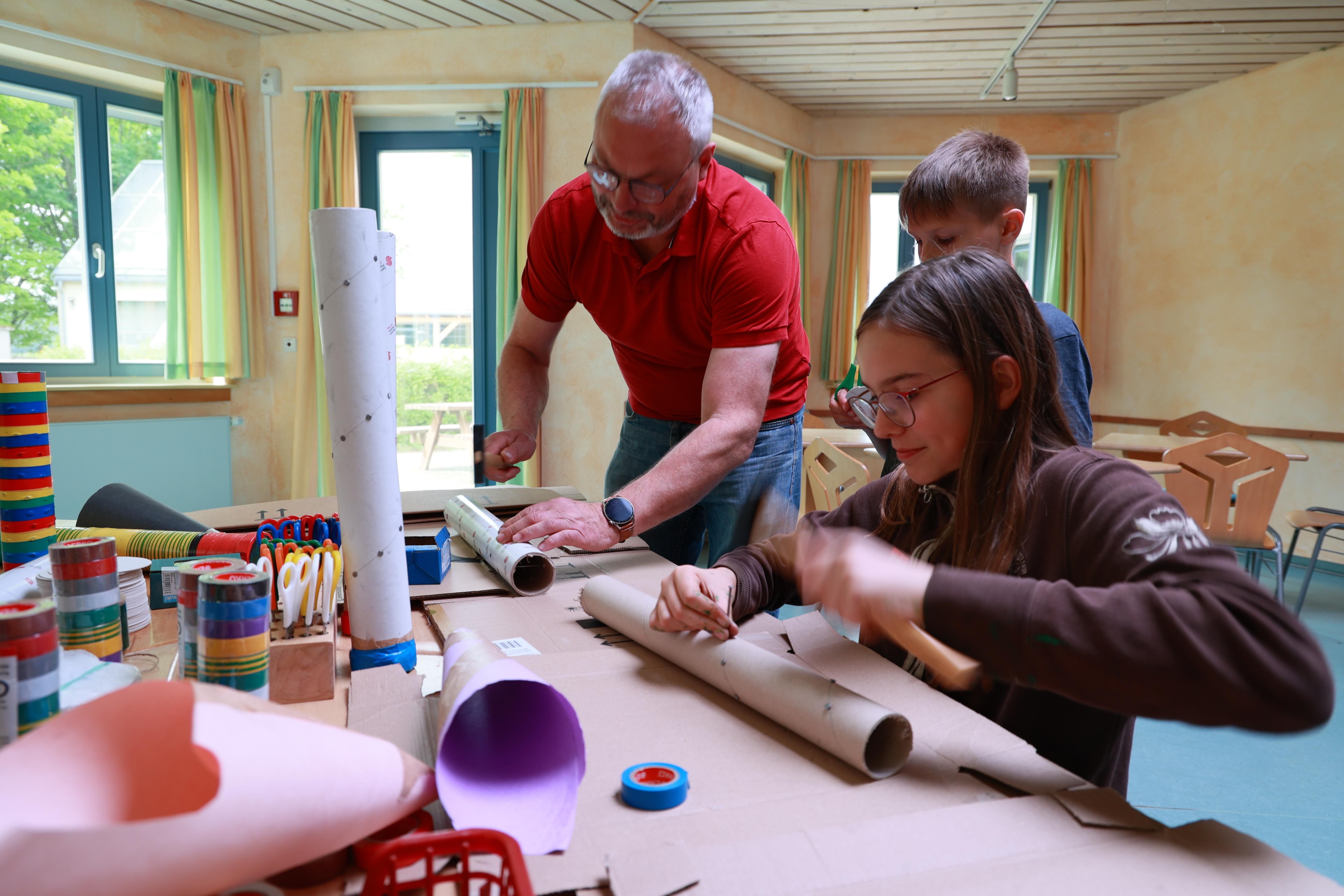 Parallel dazu waren viele Kinder auch handwerklich und kreativ aktiv: Beim Basteln und Bauen für das Bühnenbild entstanden erste Requisiten und Kulissenteile, die später bei der Musicalaufführung zum Einsatz kommen werden. Dabei war nicht nur künstlerisches Talent gefragt – auch Teamarbeit und Vorstellungskraft waren wichtige Bestandteile dieser Aktivitäten.