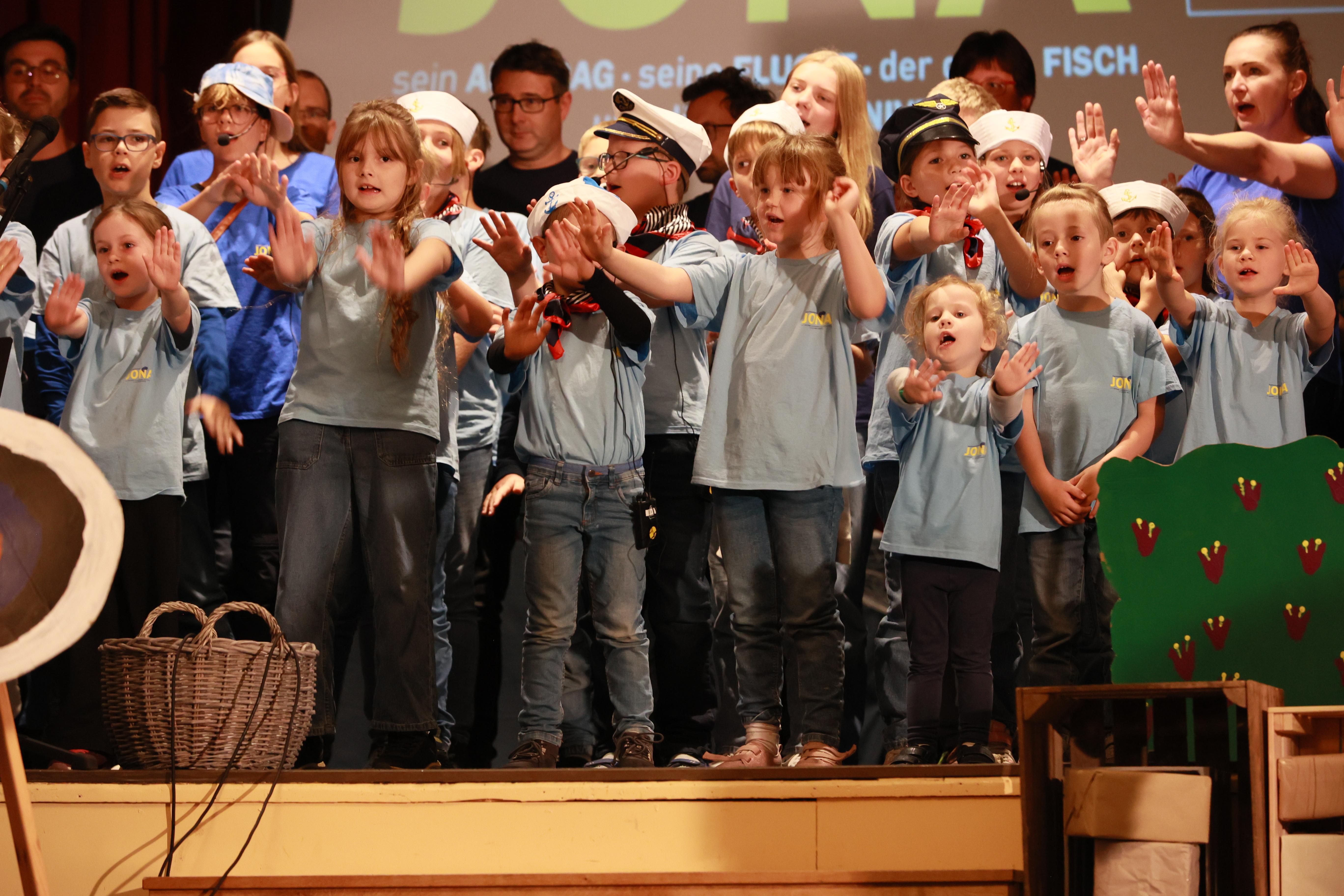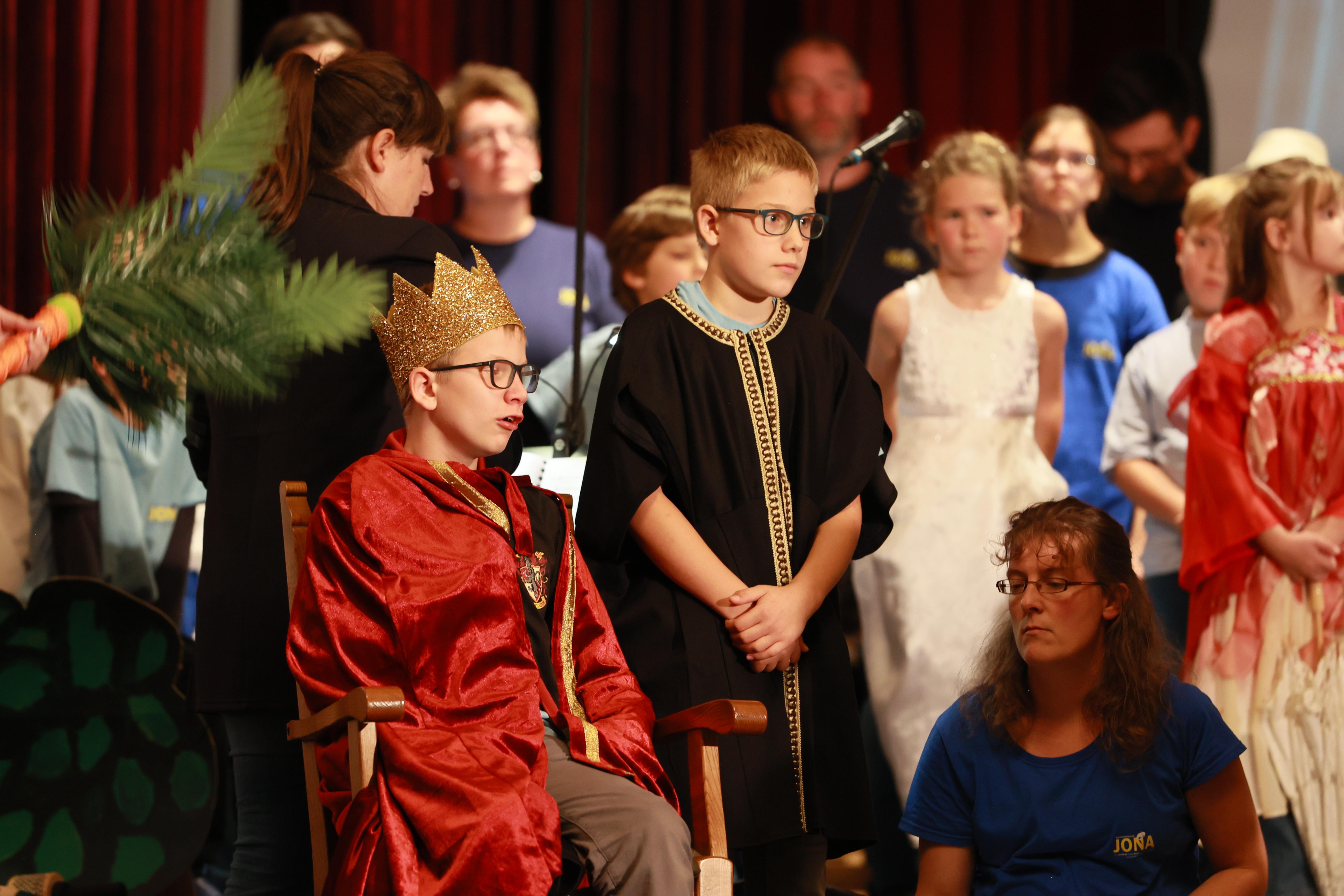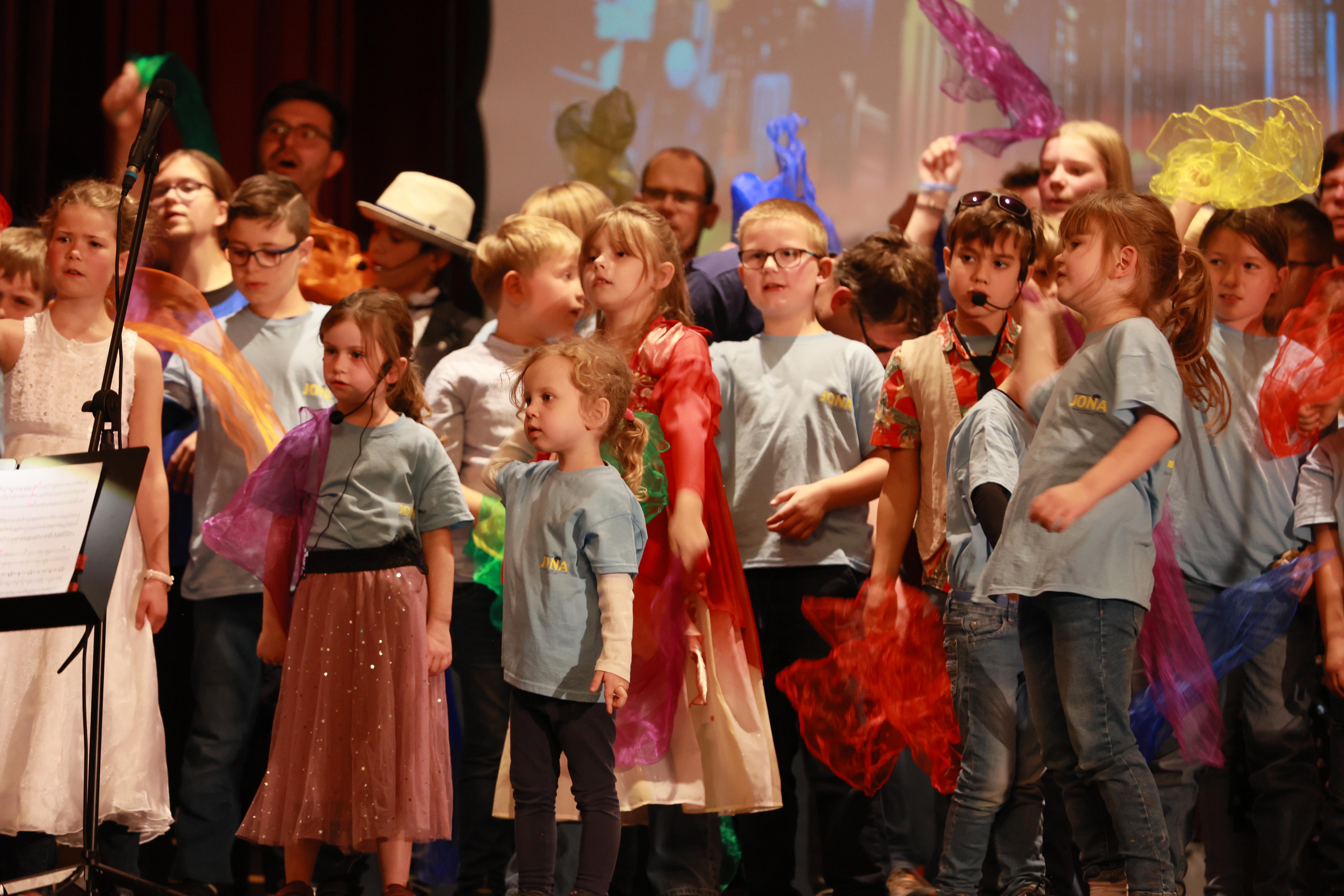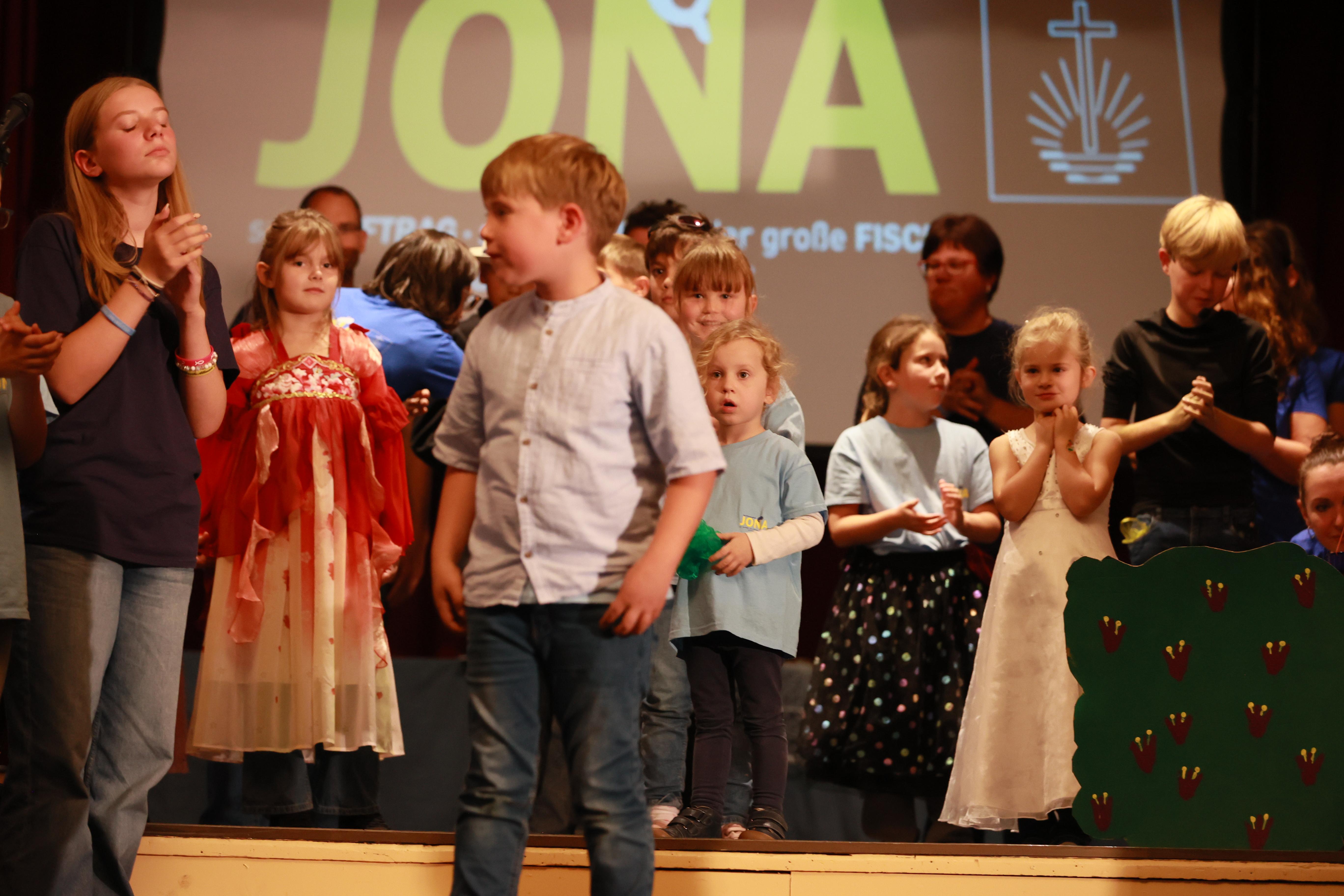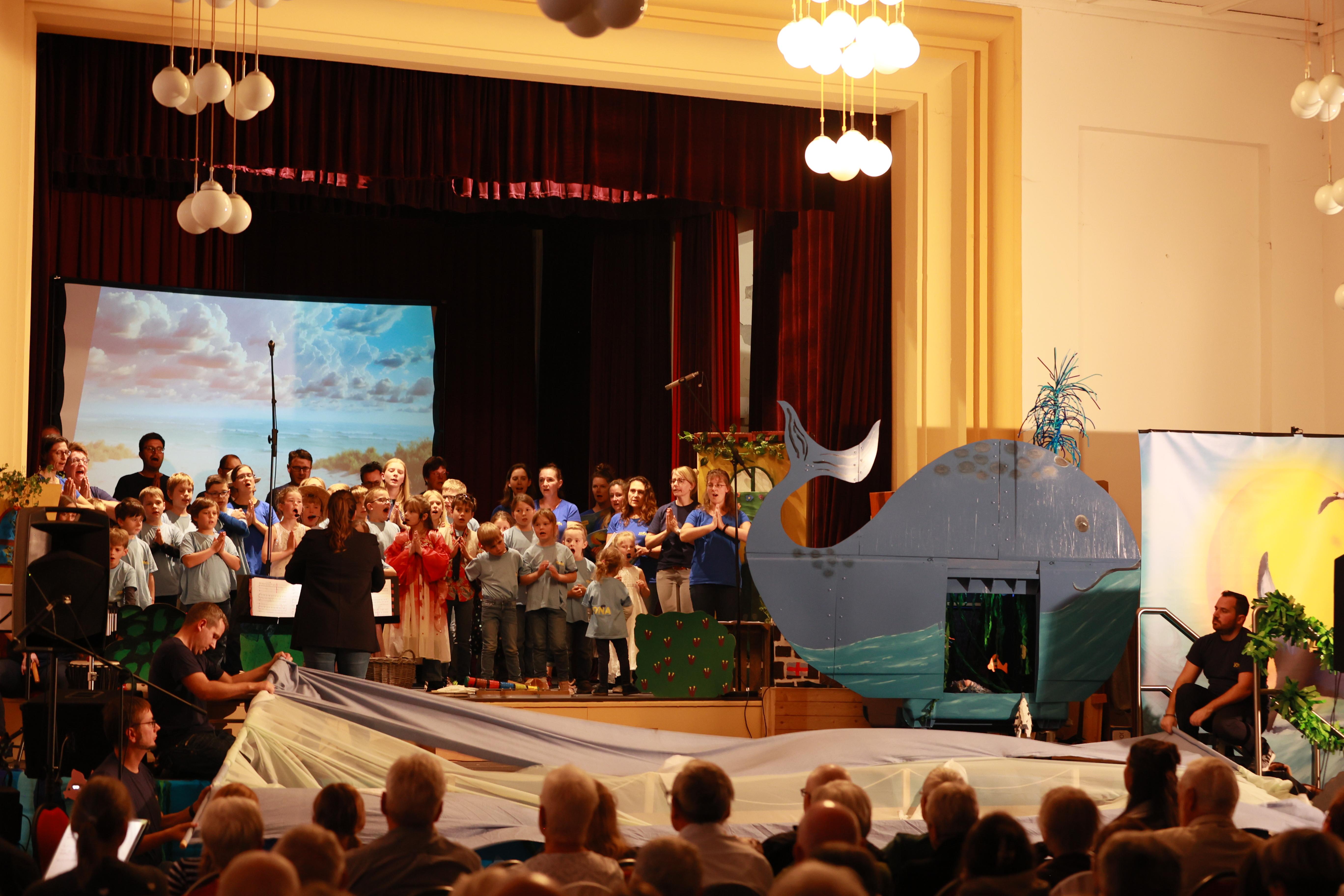 Mit viel Freude und Begeisterung brachten die jungen Glaubensgeschwister die biblische Geschichte des Propheten Jona auf die Bühne. Sie überzeugten mit Gesang, Schauspiel und auch Instrumentalmusik. Die Darstellung machte deutlich, wie lebendig Gottes Wort durch das Mitwirken der Kinder werden kann. Und einen Ohrwurm bekamen die Besucher gleich mit!