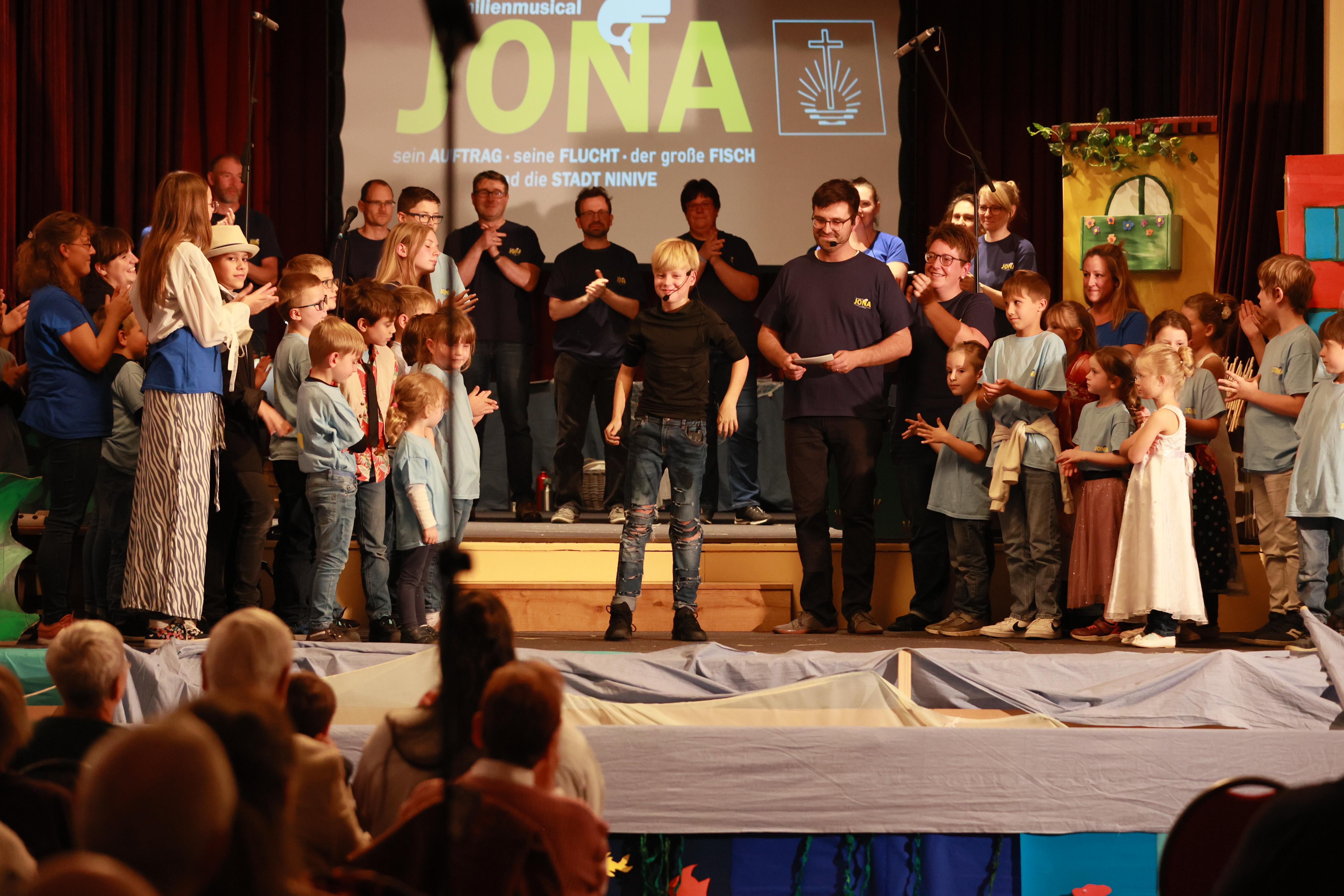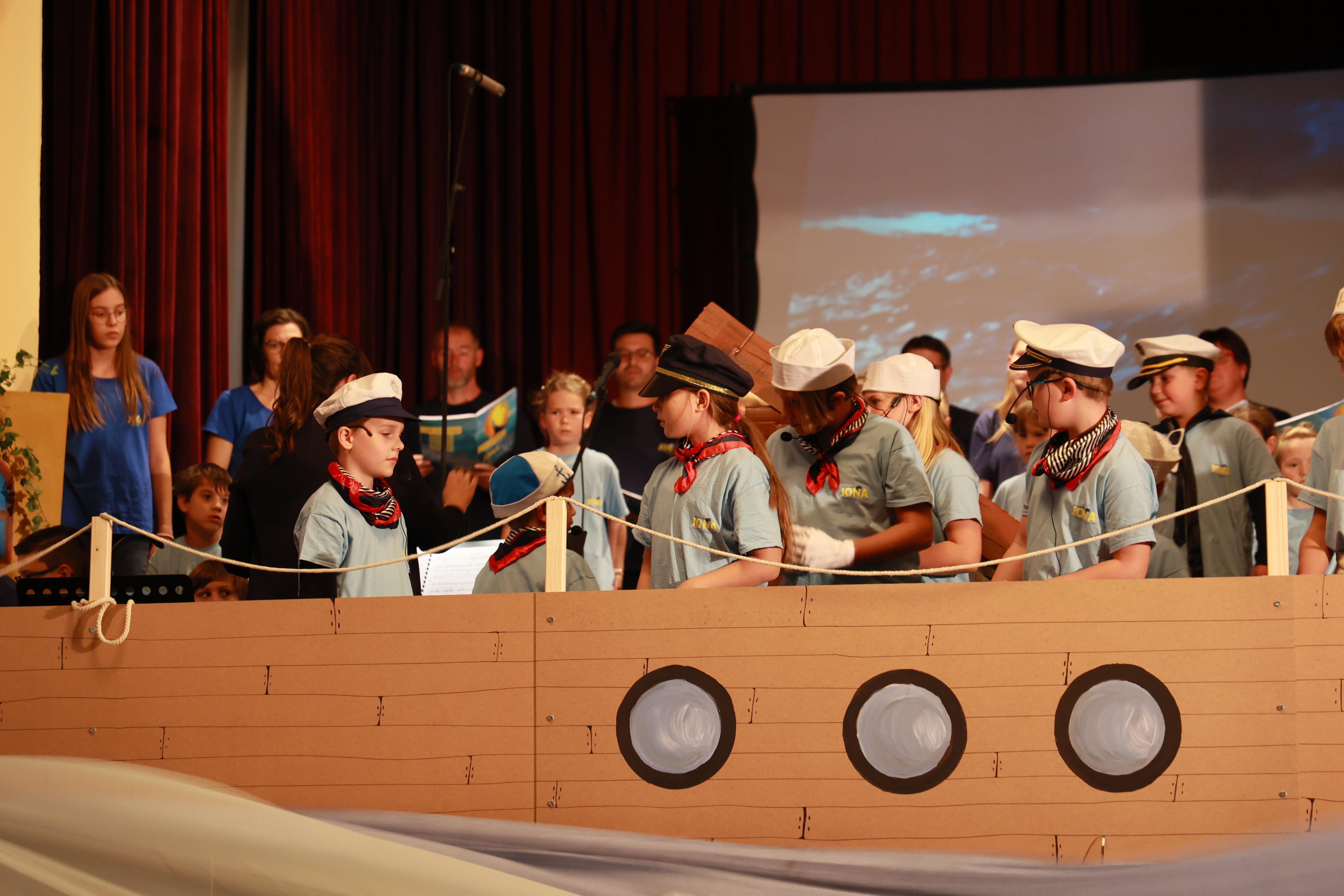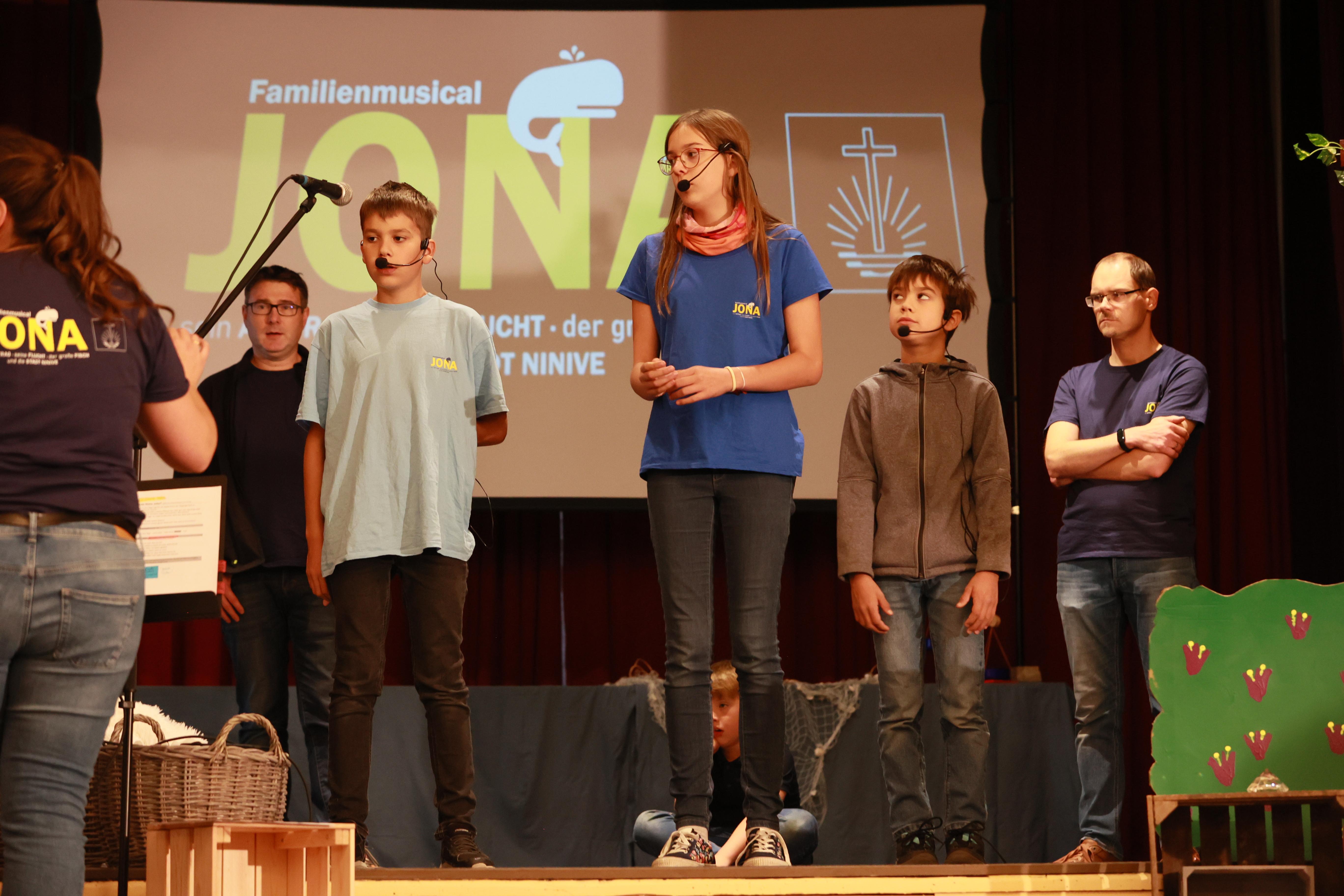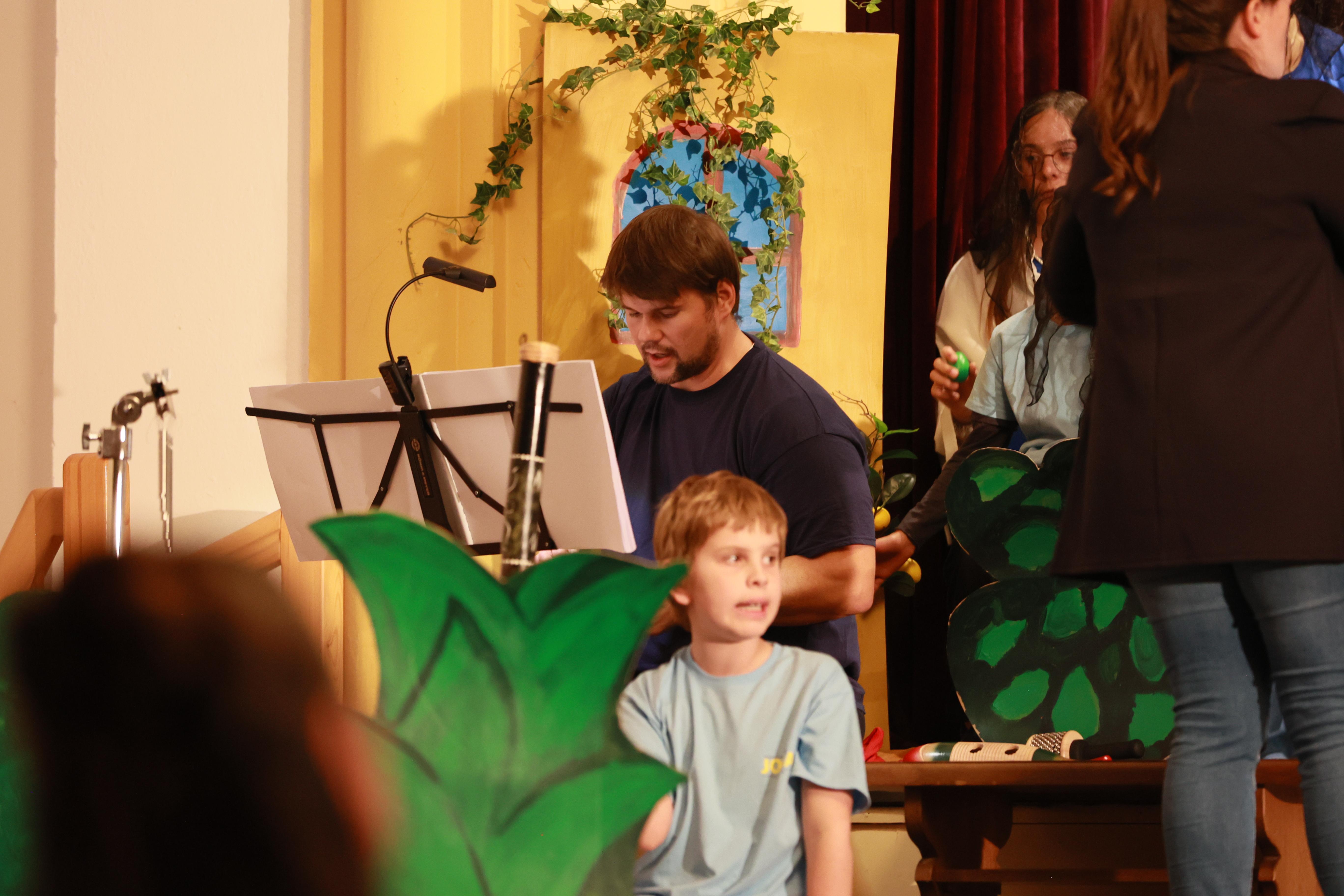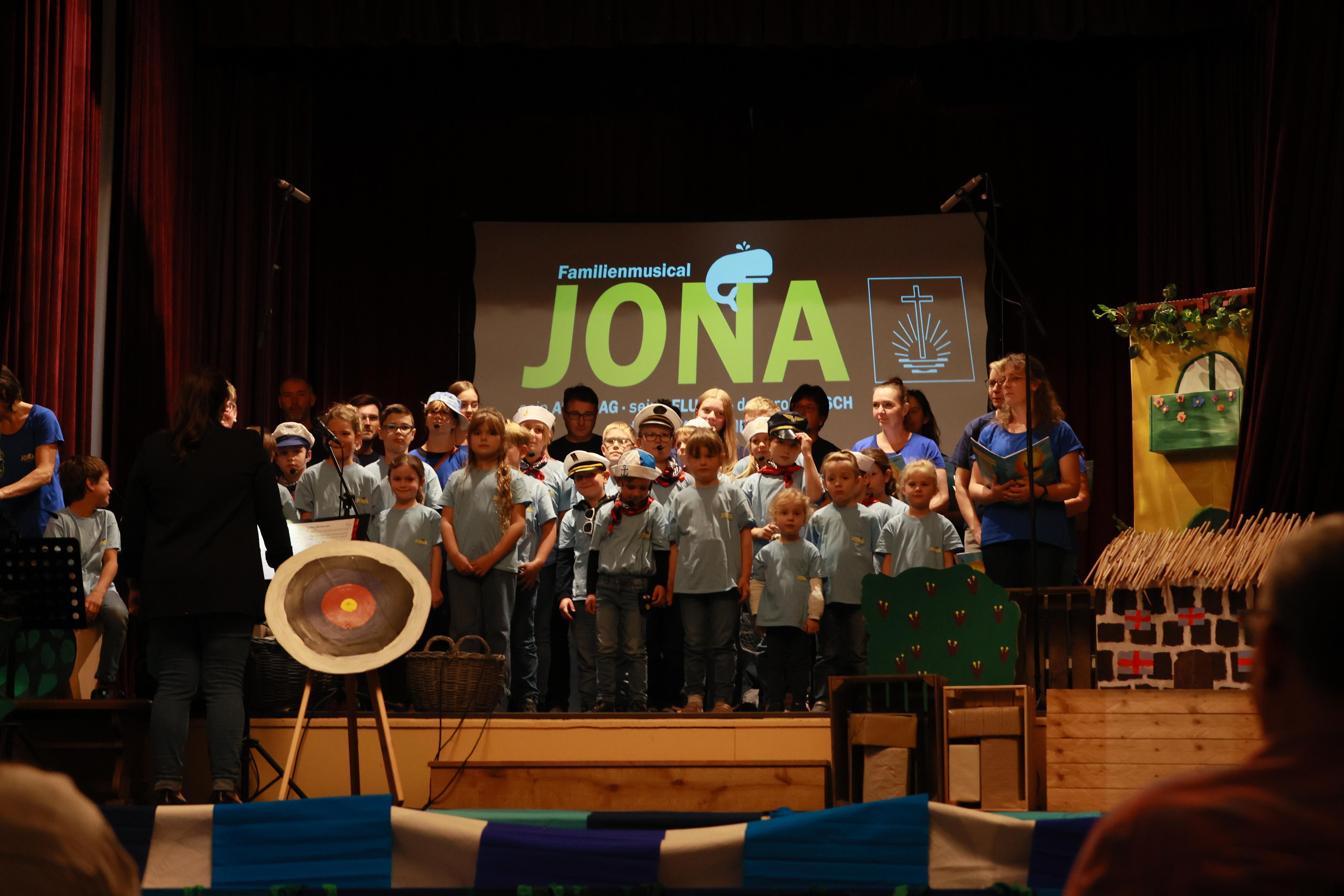 Mit viel Freude und Begeisterung brachten die jungen Glaubensgeschwister die biblische Geschichte des Propheten Jona auf die Bühne. Sie überzeugten mit Gesang, Schauspiel und auch Instrumentalmusik. Die Darstellung machte deutlich, wie lebendig Gottes Wort durch das Mitwirken der Kinder werden kann. Und einen Ohrwurm bekamen die Besucher gleich mit!