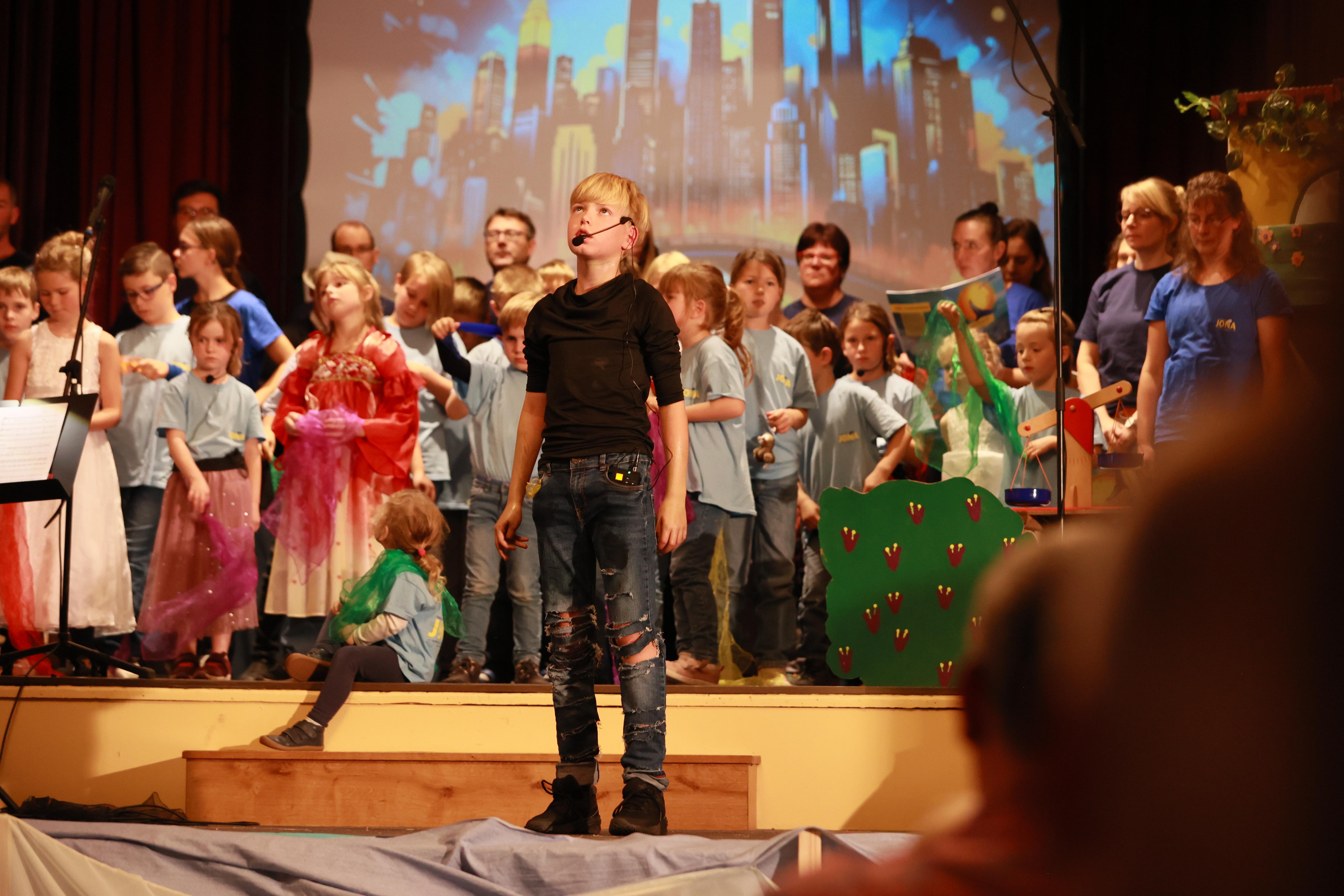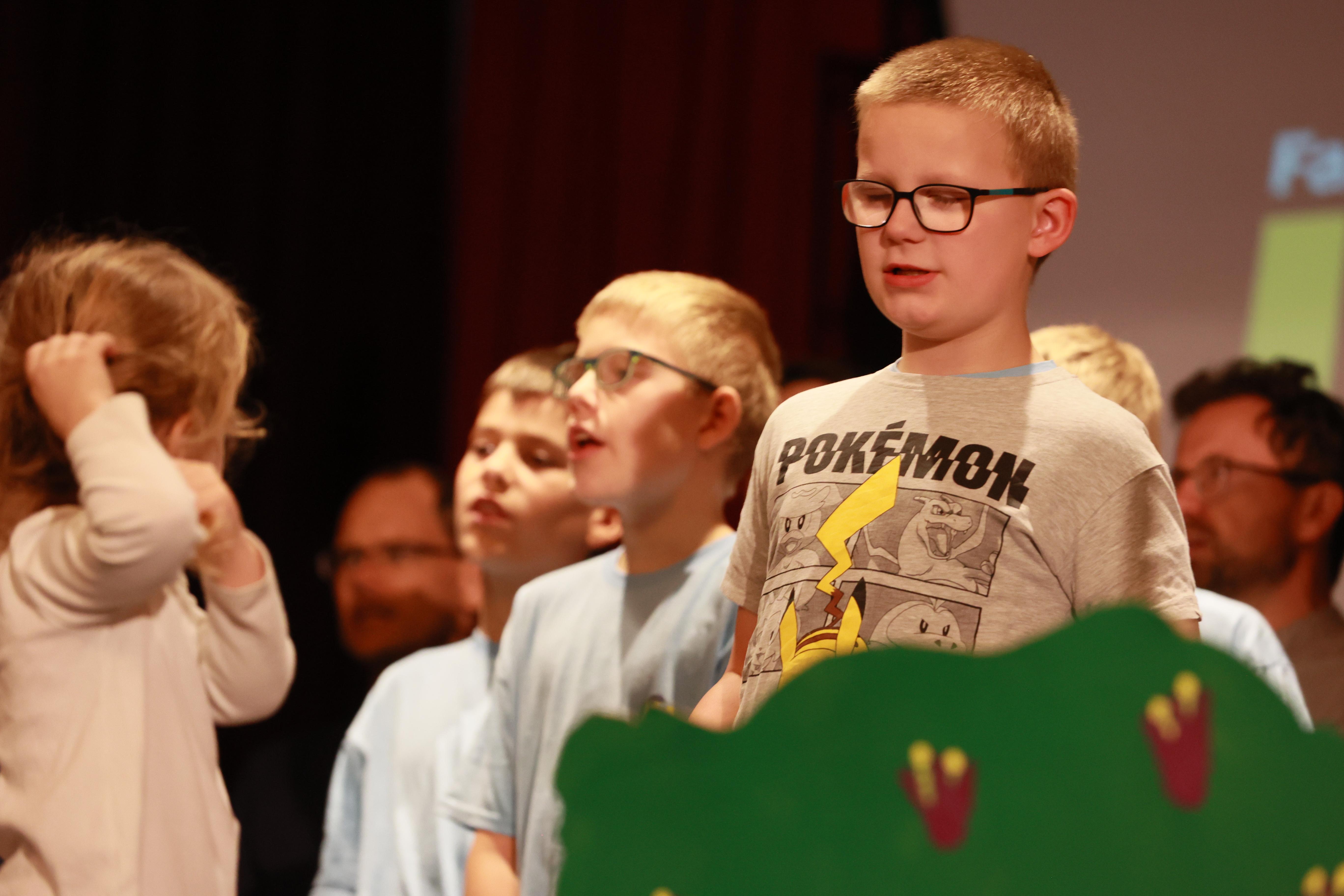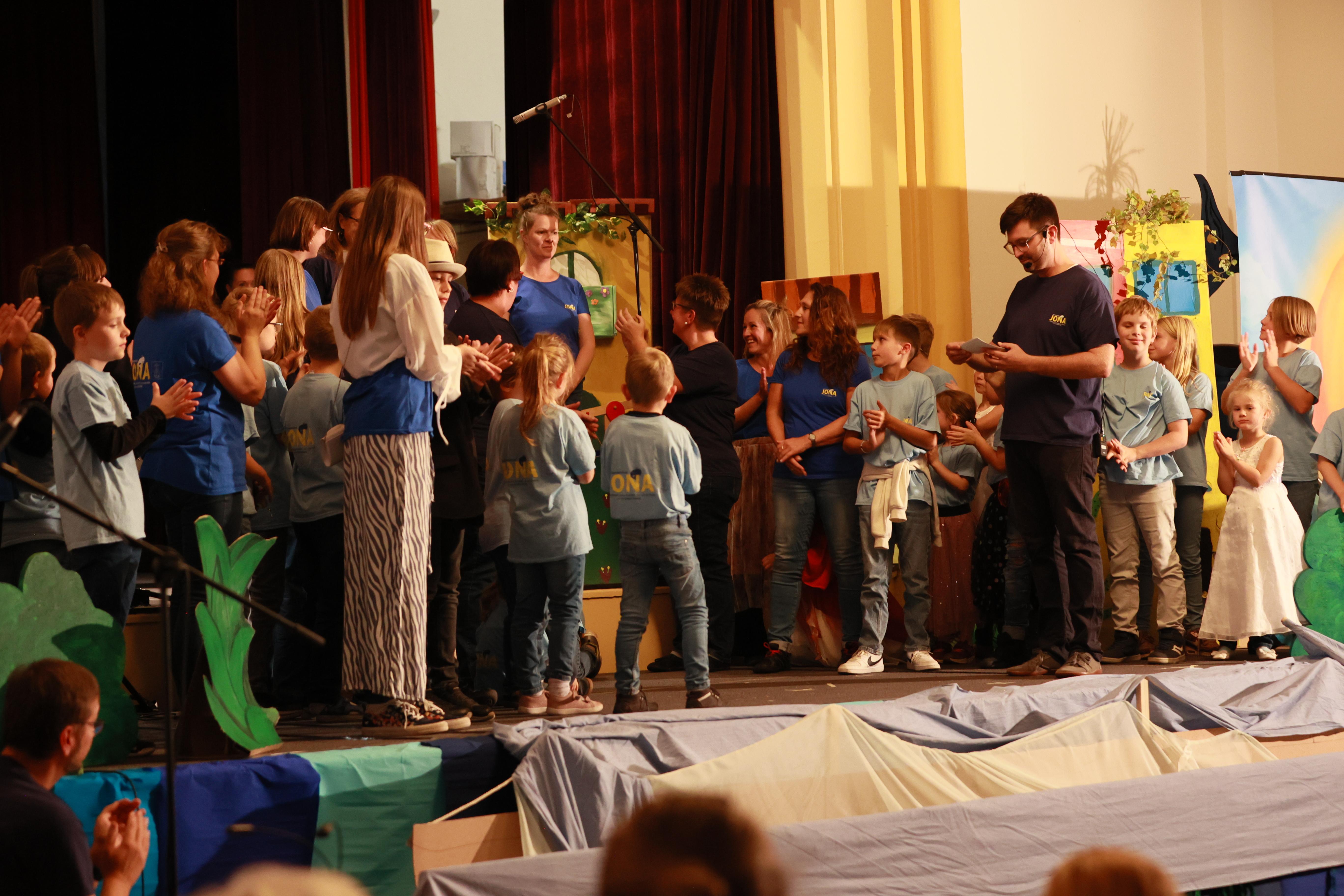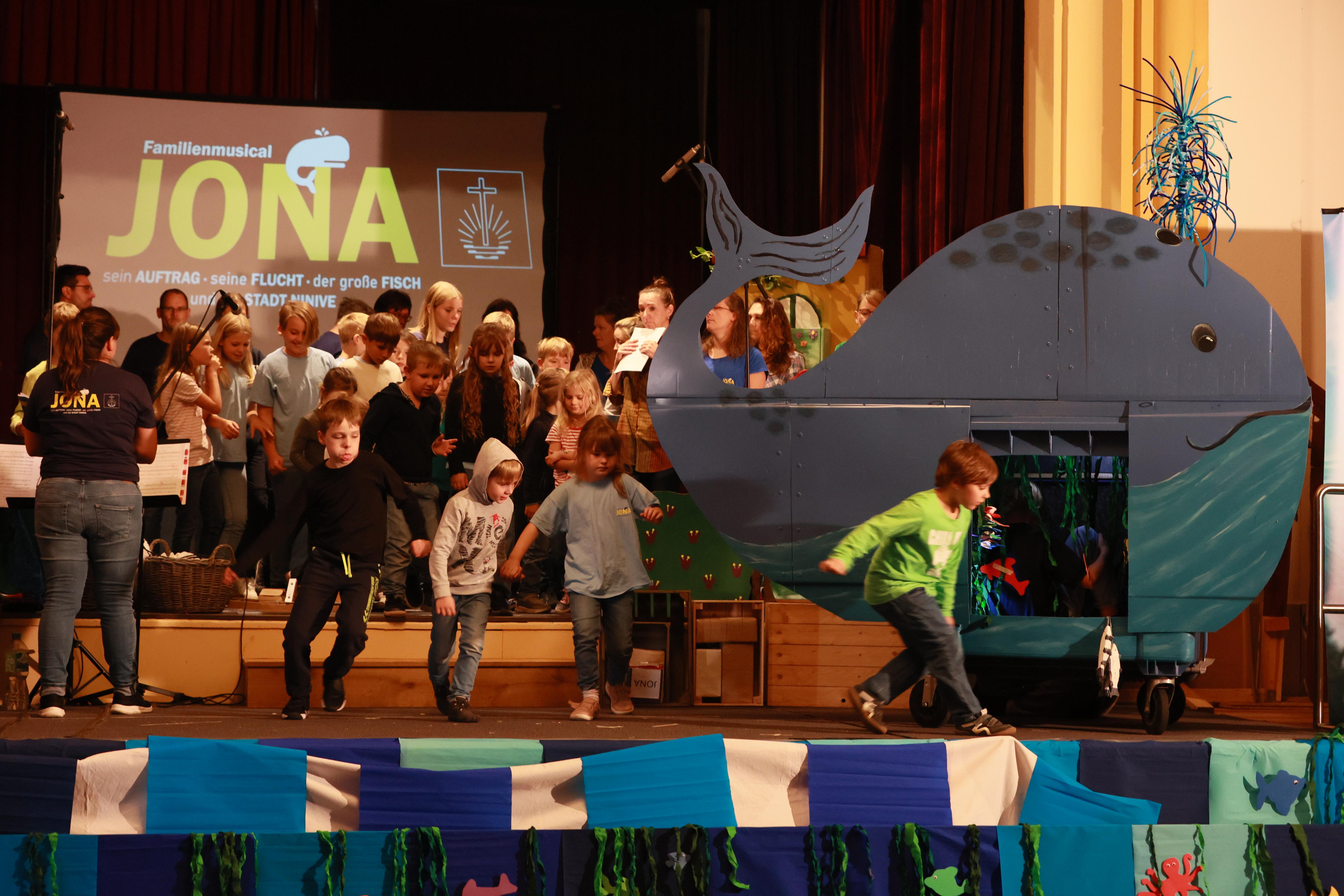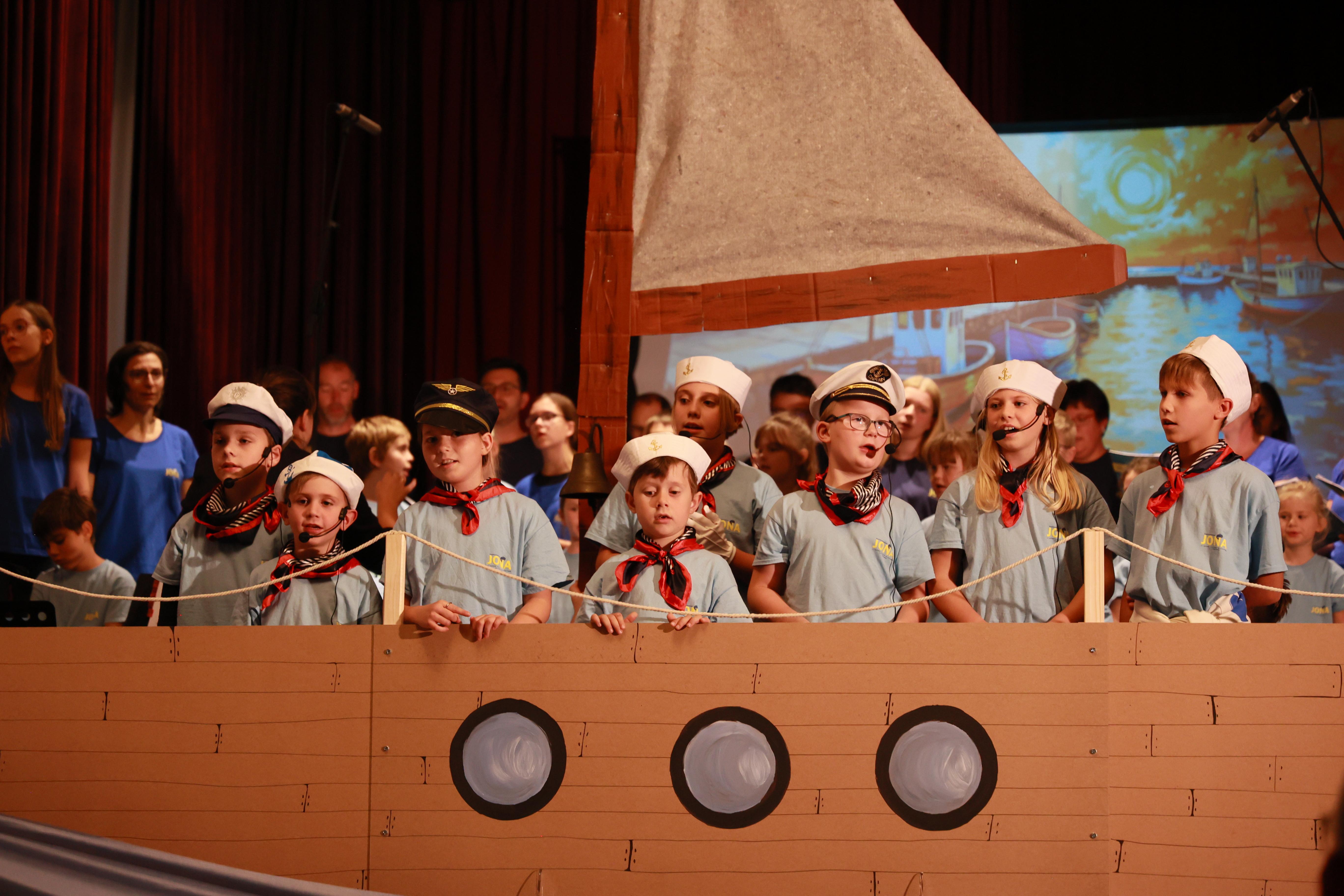 Mit viel Freude und Begeisterung brachten die jungen Glaubensgeschwister die biblische Geschichte des Propheten Jona auf die Bühne. Sie überzeugten mit Gesang, Schauspiel und auch Instrumentalmusik. Die Darstellung machte deutlich, wie lebendig Gottes Wort durch das Mitwirken der Kinder werden kann. Und einen Ohrwurm bekamen die Besucher gleich mit!